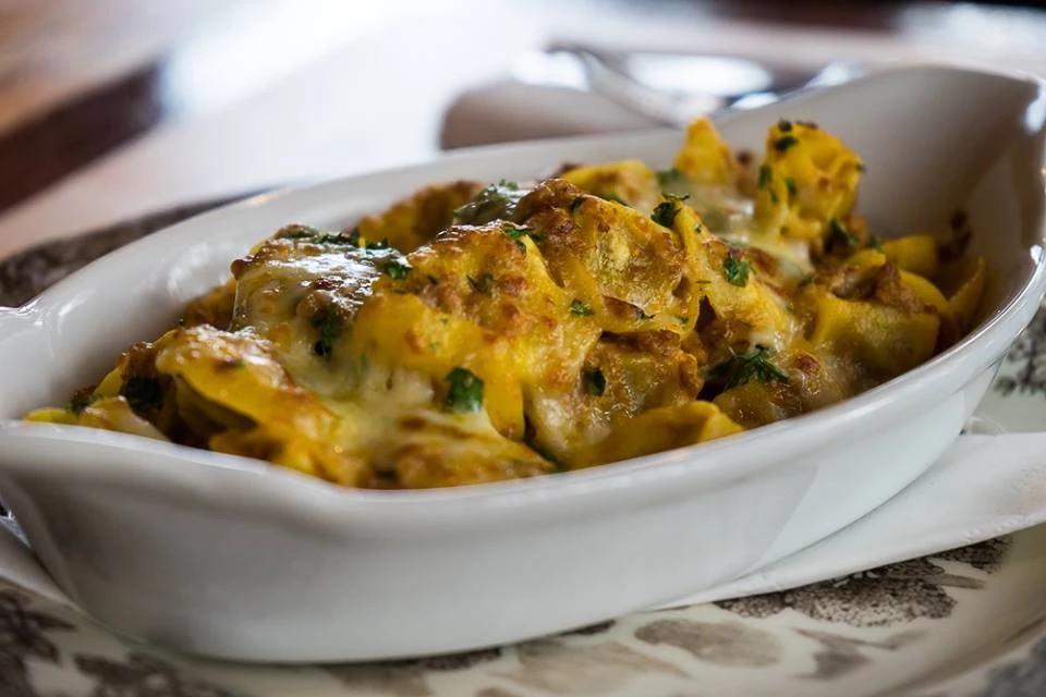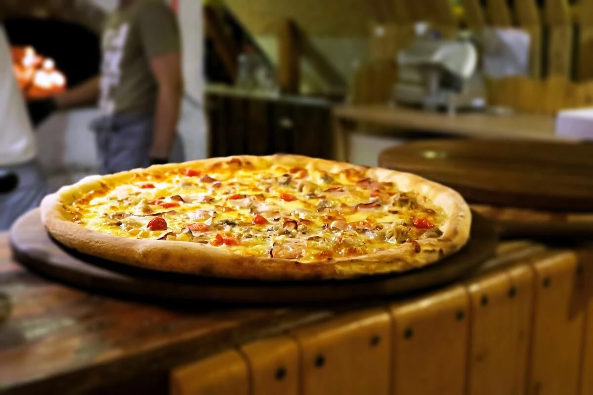Tomato sauce, mozzarella, mushrooms, cream, brie, tyrolean speck, parsley.