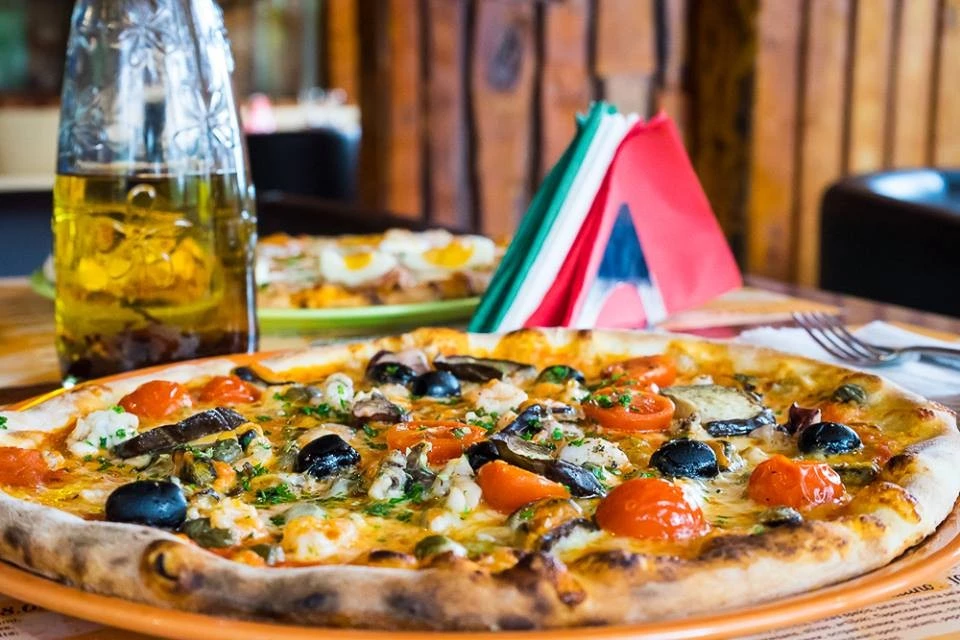Tomato sauce, mozzarella, seafood, capers, cherry tomatoes, eggplant, olives, garlic oil, parsley.